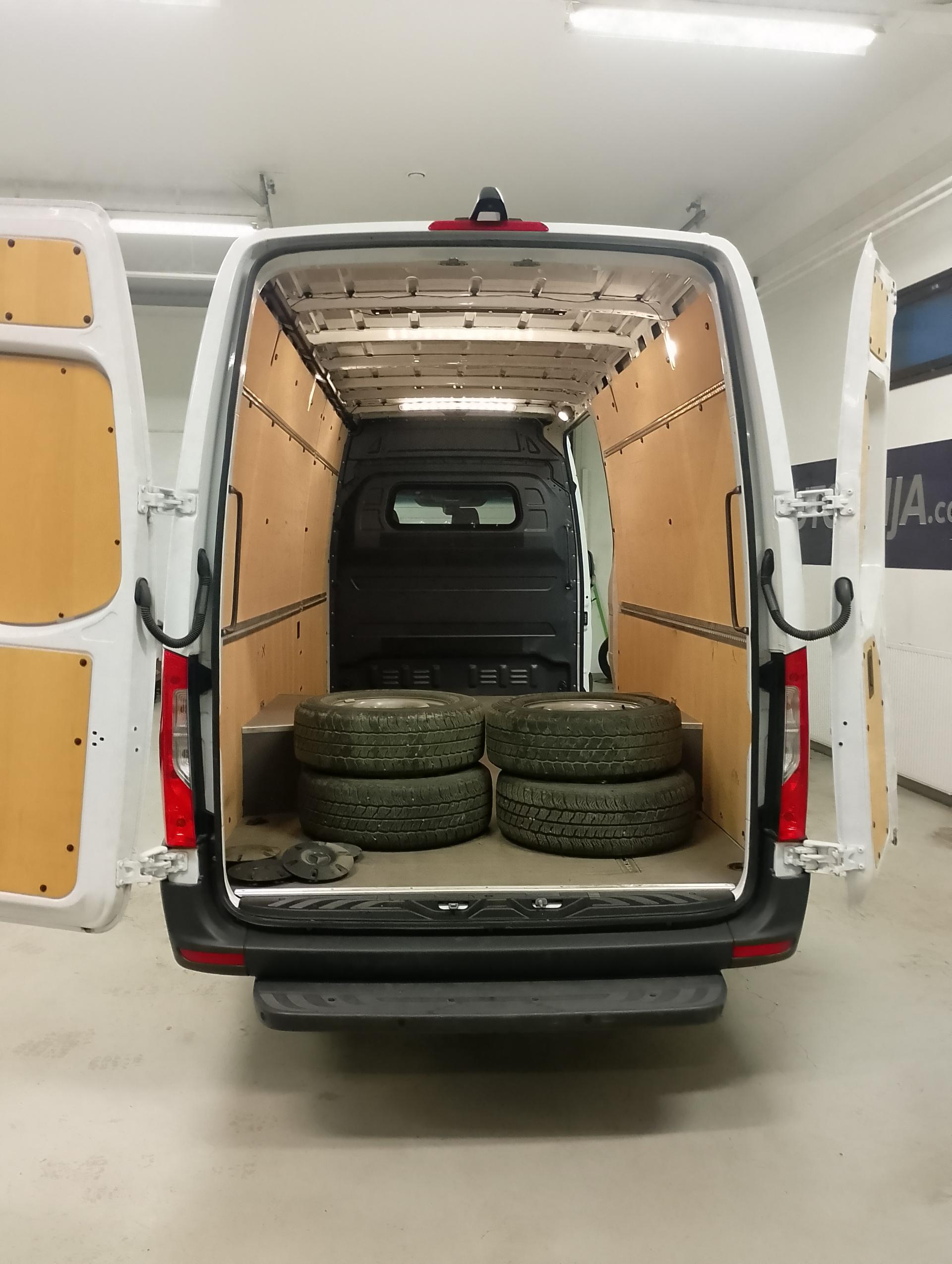 • Tavaratilan vanerointi. Kiinnityskiskot ja koukut + led valaistus